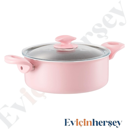 Mehtap 26cm Karnıyarık Tencere Gri Granit Dış Pembe