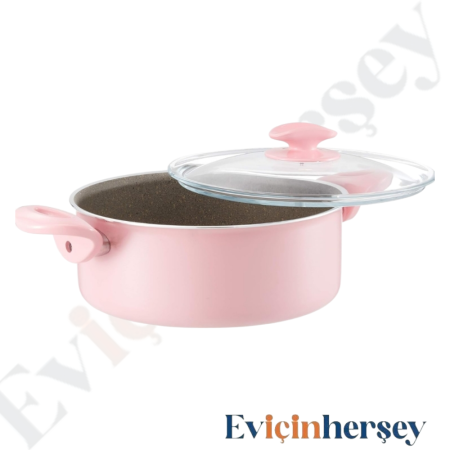 Mehtap 28cm Karnıyarık Tencere Gri Granit Dış Pembe