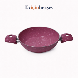 Mehtap 22cm Çift Kulplu Sahan Gri Granit Dış Pembe