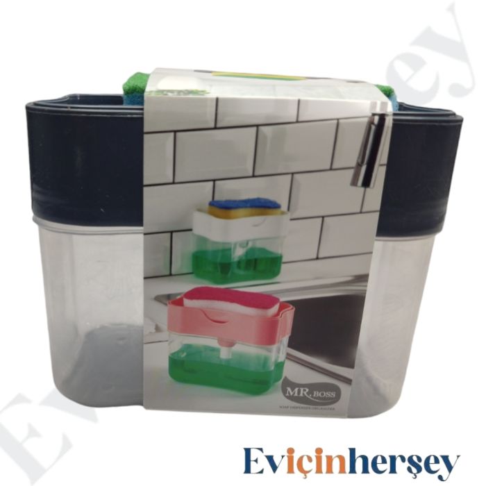 Organizers Sıvı Sabunluk MR.Boss- Bulaşık Süngerli - Gri - ORG-98