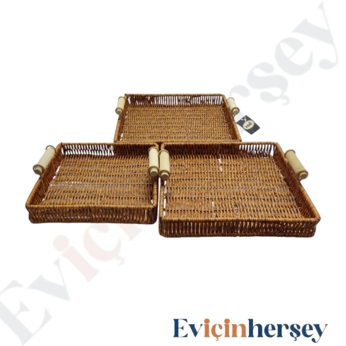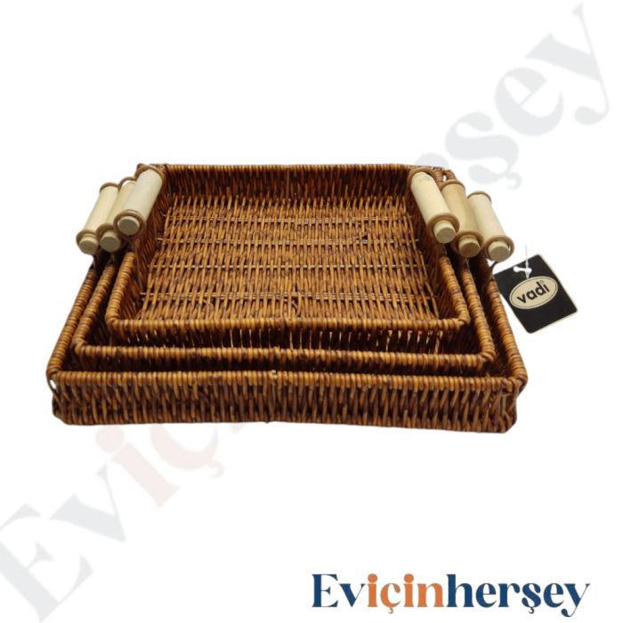 Vadi 3'lü Örgü Tepsi Kare